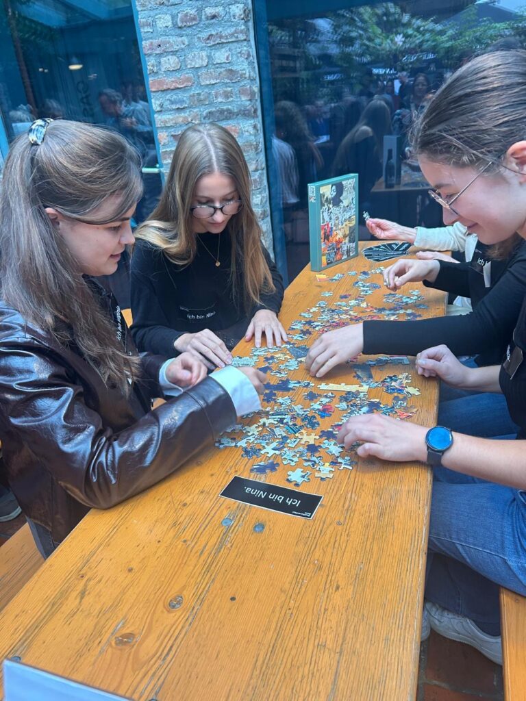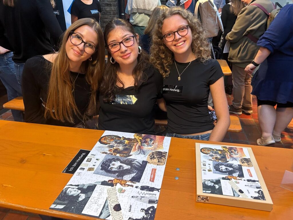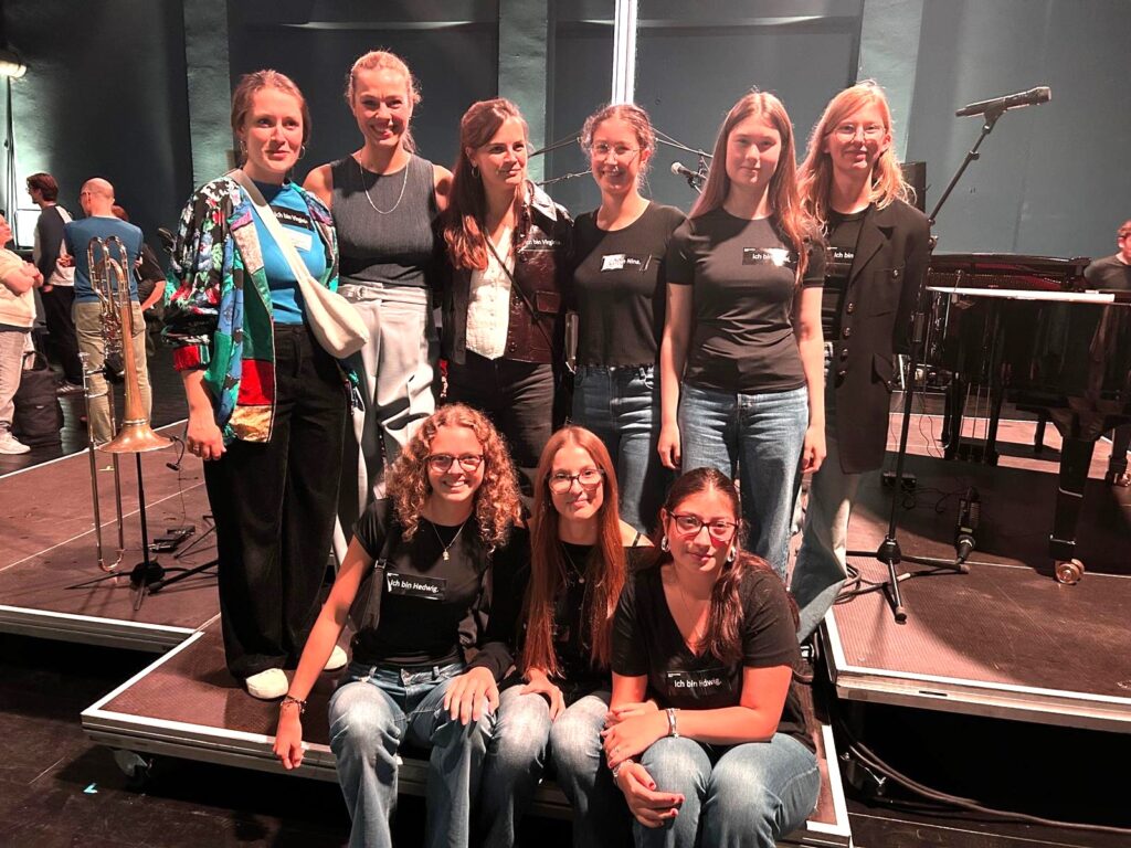Unsere Schülerinnen hatten in der Pause viel zu tun, anhand von Namensschildern war genau zu erkennnen, zu welcher Frauenfigur sie gearbeitet hatten. An verschienden Tischen wurde gepuzzelt und über die historischen Frauen gesprochen sowie natürlich auch über unsere Schule. Und eine wunderbare Begegnung ergab sich noch nach dem Konzertende: Eine der Zuschauerin war selbst Schülerin der LFS und ist heute Schulleiterin in Rheinland-Pfalz. Sie freute sich sehr, mit ihrer ehemaligen Schule, vertreten durch unsere Schülerinnen, noch einmal in Kontakt zu treten.