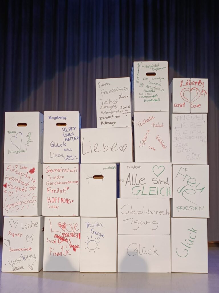 der Stufe 8 und die Lehrerinnen und Lehrer, die die Vorführung besucht hatten, beschrifteten